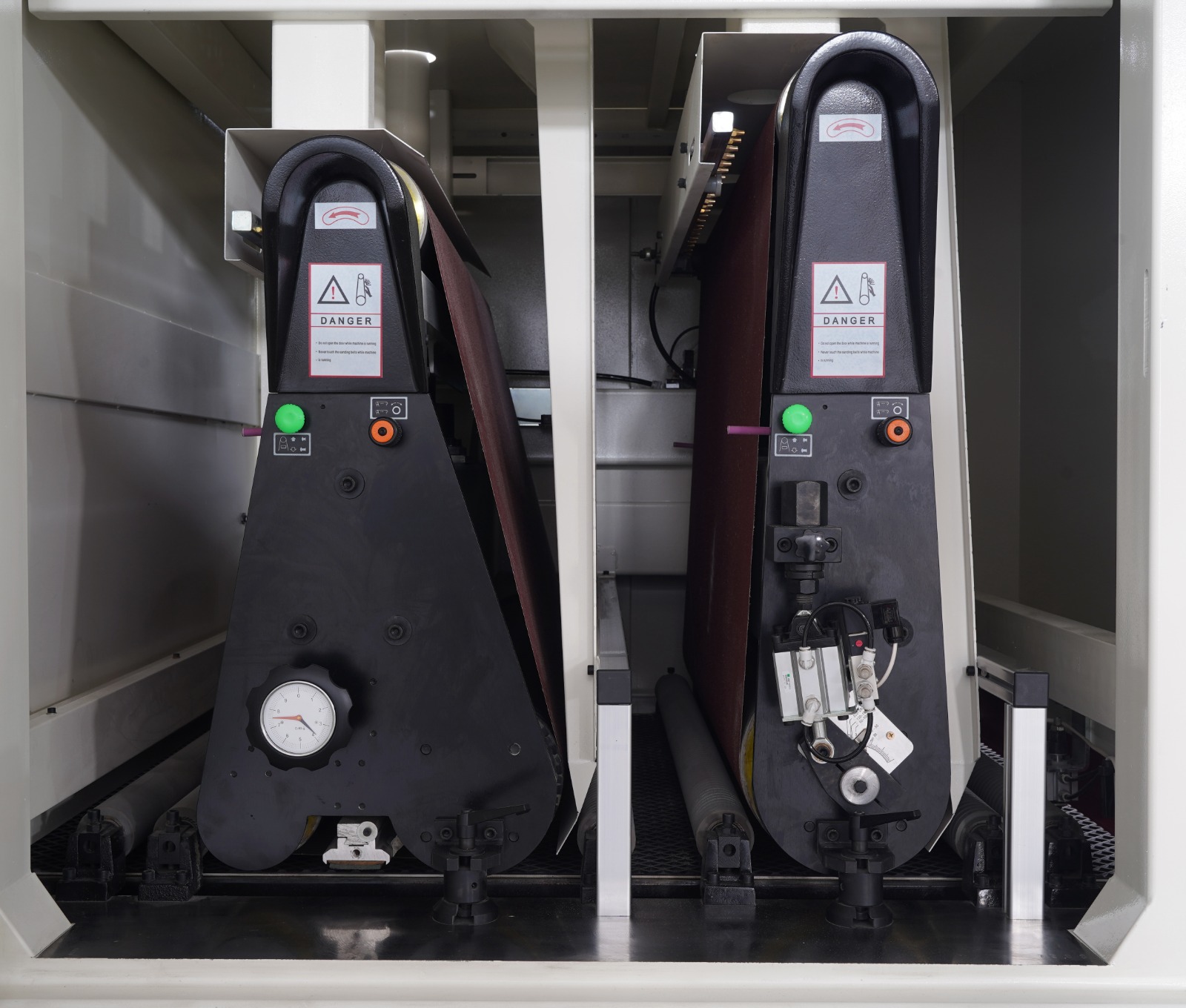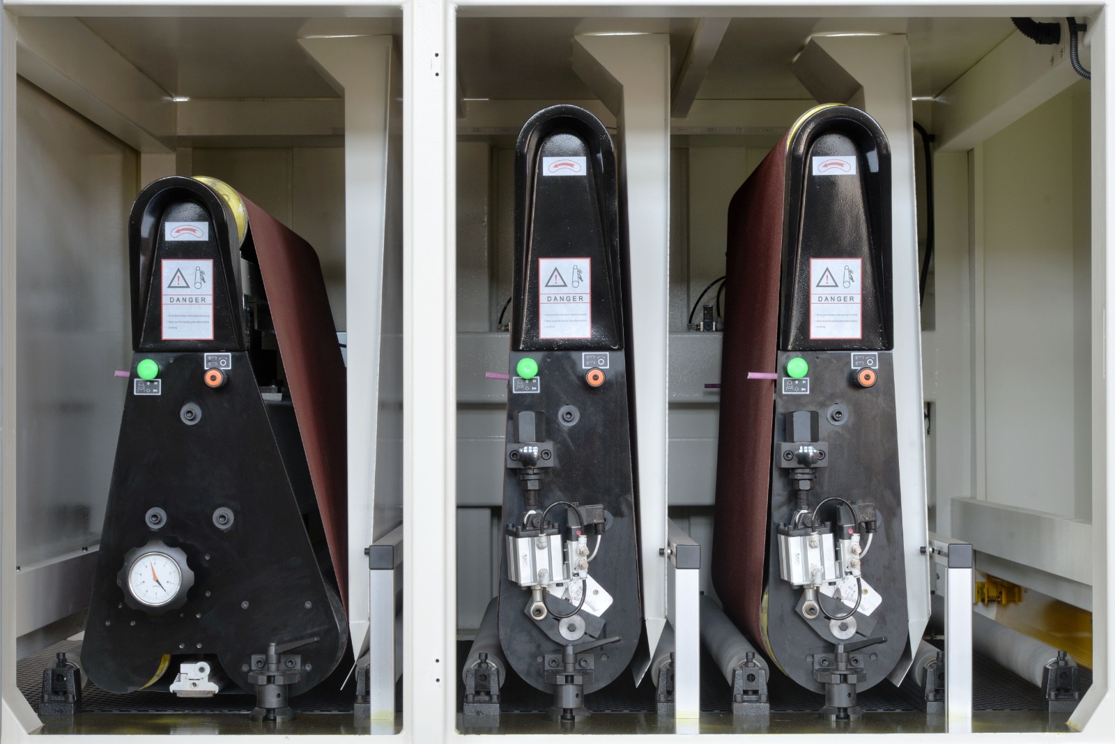 Chaque groupe est équipée d'un système de tension pneumatique des bandes abrasives pour des changements rapides et faciles.